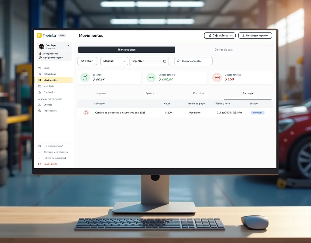 Al final del día Treinta te muestra cuánto cobraste, cuánto gastaste y cuánto tienes disponible en caja. Sin cálculos manuales.